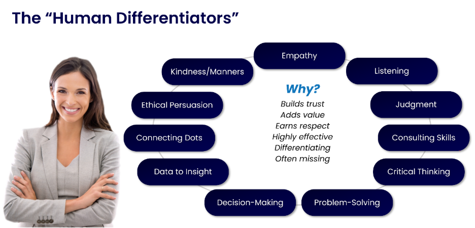 There’s no “closing” or “handling” or “overcoming objections” or other silly “Jedi Mind Tricks” of manipulation. That said, it does include elements of ethical persuasion, as needed – once it’s clear that the salesperson can help the buyer and is operating in the buyer’s best interest. But otherwise, it’s simply great, other-centric, empathetic, human communication (the “human differentiators,” as I call them) focused on solving problems and helping buyers achieve their desired future state outcomes.