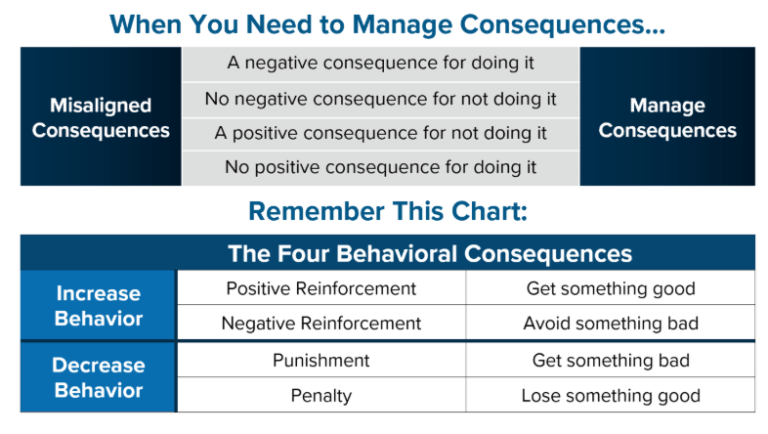 That includes how you use consequences. When you need to manage consequences, remember the Four Behavioral Consequences: