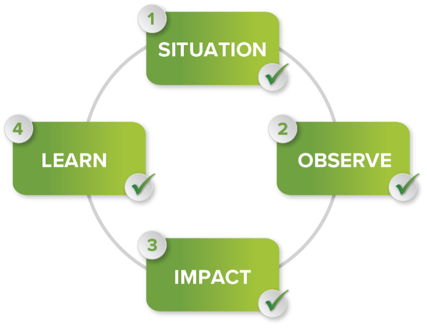 - Impact: Explain the effect on others or outcomes and check for understanding.